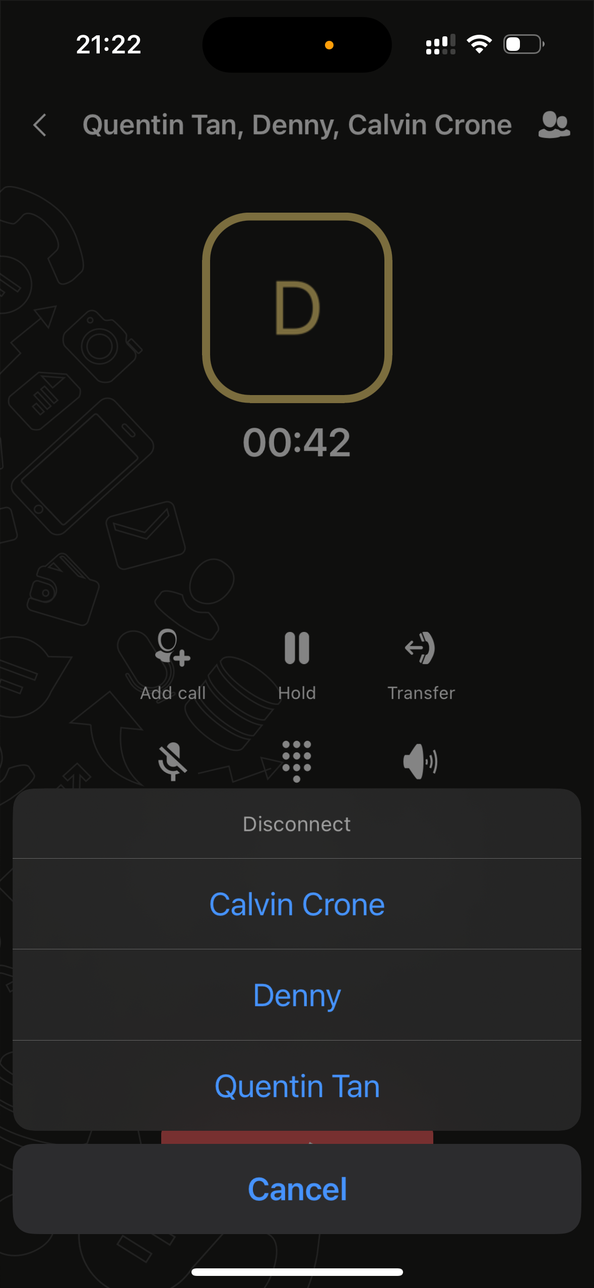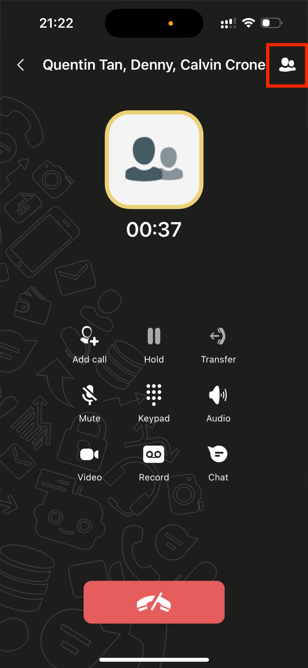 - During an ongoing conference call, tap on the “Remove participant” button at the top-right corner of the app to open the list of participants.