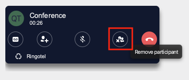 - During an ongoing conference call, click on the “Remove participant” button to open the list of participants.